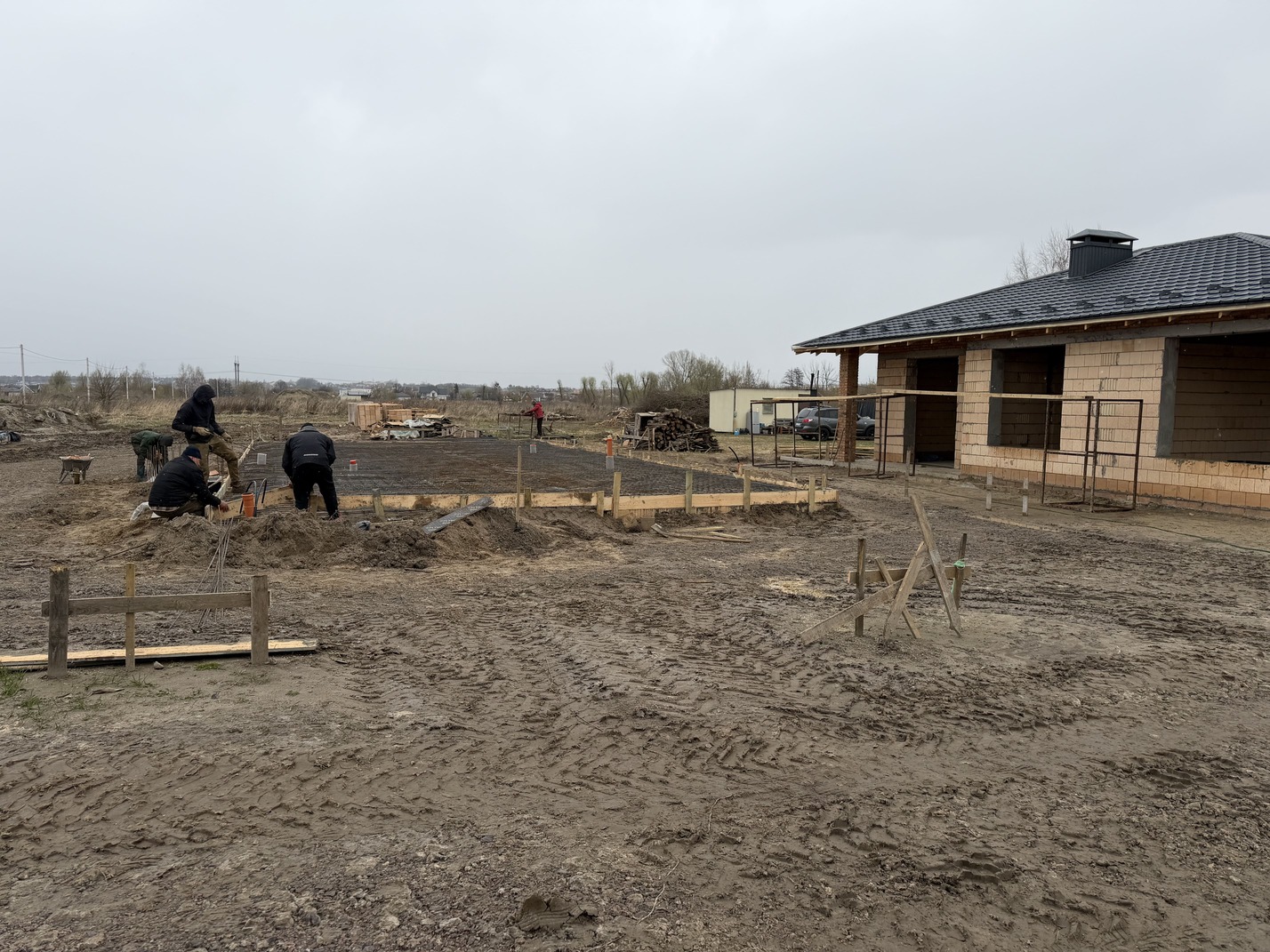 Завершено фасадні роботи. Розпочали бетонні роботи з влаштування опалубки паркану та сходів...