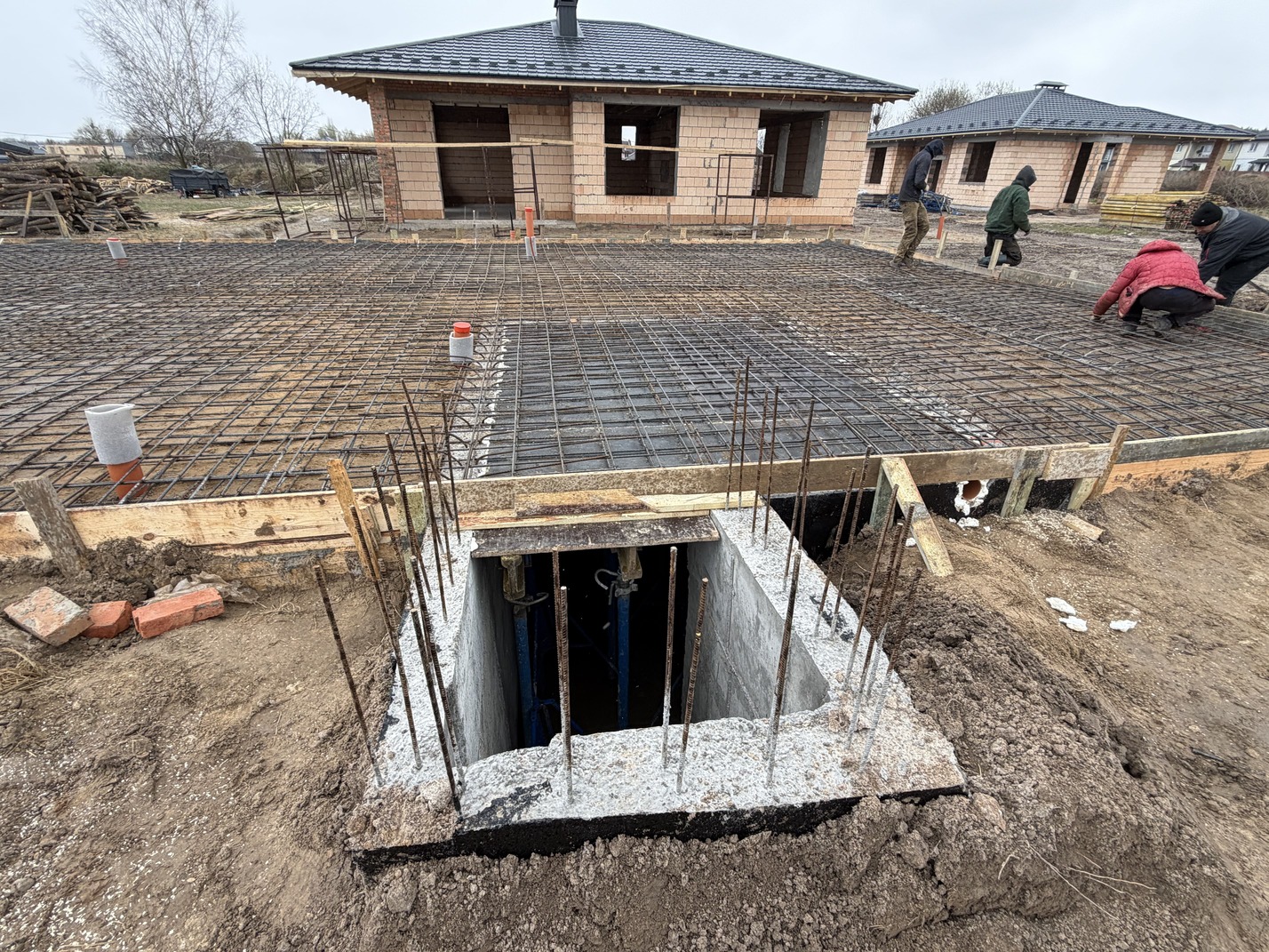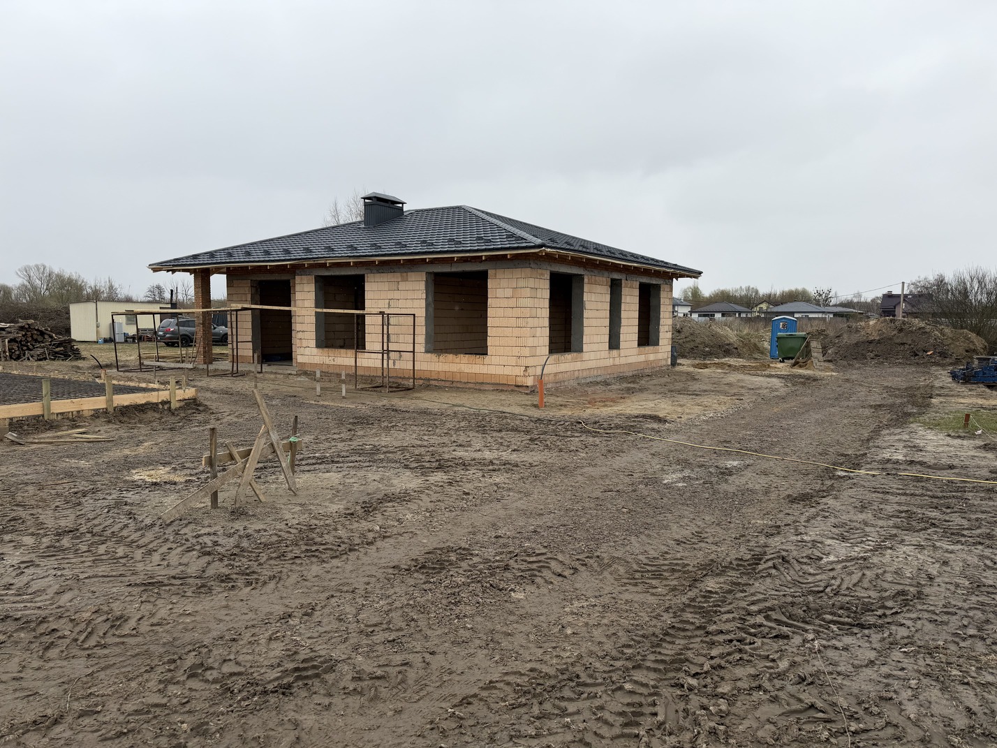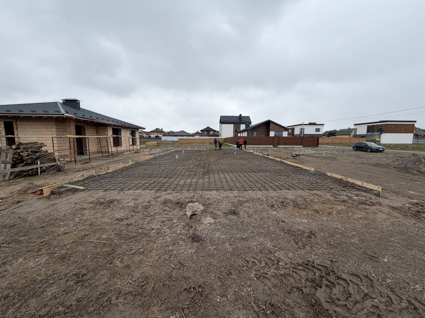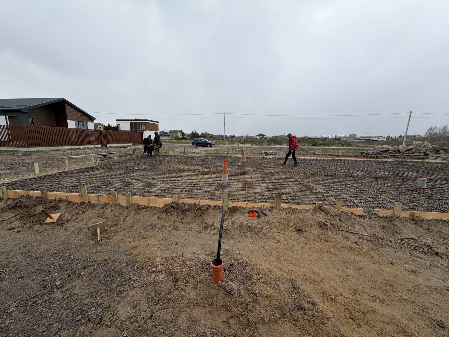 Будівництво котеджу «Scandi», 124 м2 Завершили кладку стін одноповерхового будинку. Розпочато залиття...